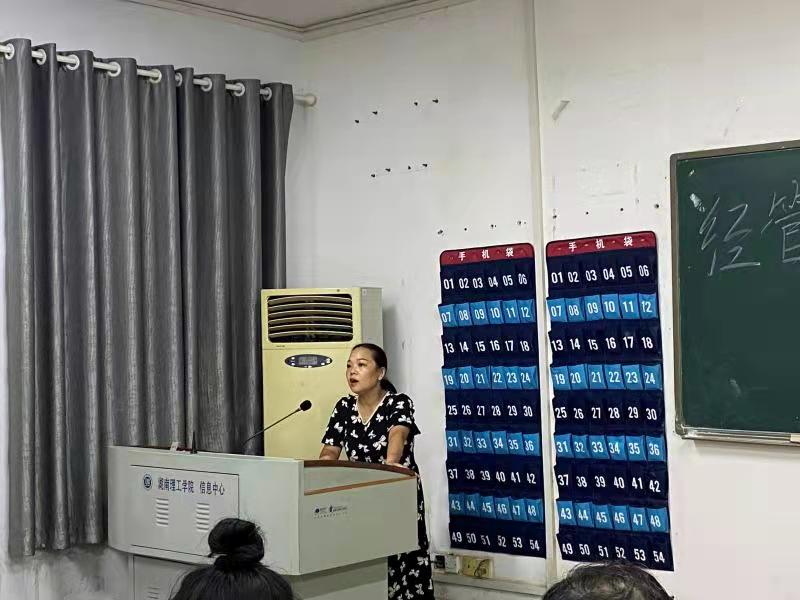 党总支书记刘姣花作动员讲话,她首先对疫情防控下迎新新形势进行了分析说明,并要求全体迎新工作人员要统一思想、提高认知,务必以最好的状态向新生展示经管学子的精神风貌。她强调,迎新工作人员要继承经管系的优良传统,发挥先锋模范作用,做到团结协作,尽职尽责,聚焦目标,精准施策,确保本次迎新工作做到热情、周到、便捷、安全、有序。