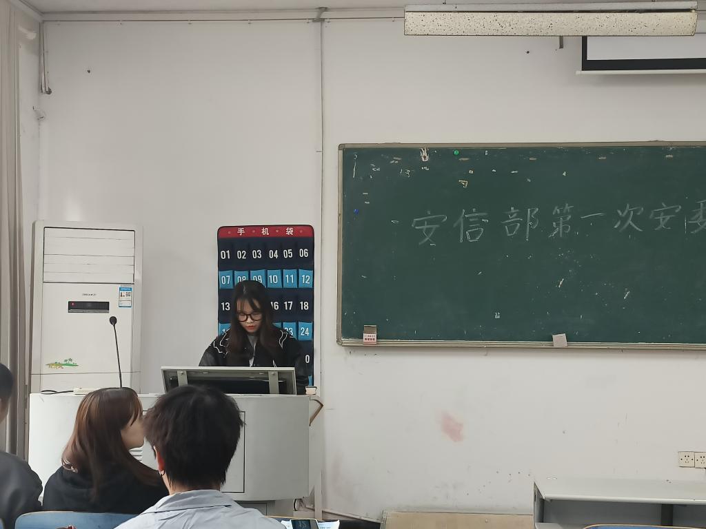 会议伊始,首先由安信部新干事进行自我介绍,旨在方便日后与各班安委对接工作,保证工作的顺利进行。其次由安信部部长谭新对安信部日后工作进行安排,并宣读安委的职责以及注意事项。会议最后,李鹏书记对日后的工作作出了相关指导,并提出了三个方面的要求:首先要有积极的工作态度和饱满的工作热情;其次需保持良好的工作成效;最后要建立一个更加科学的评价机制。