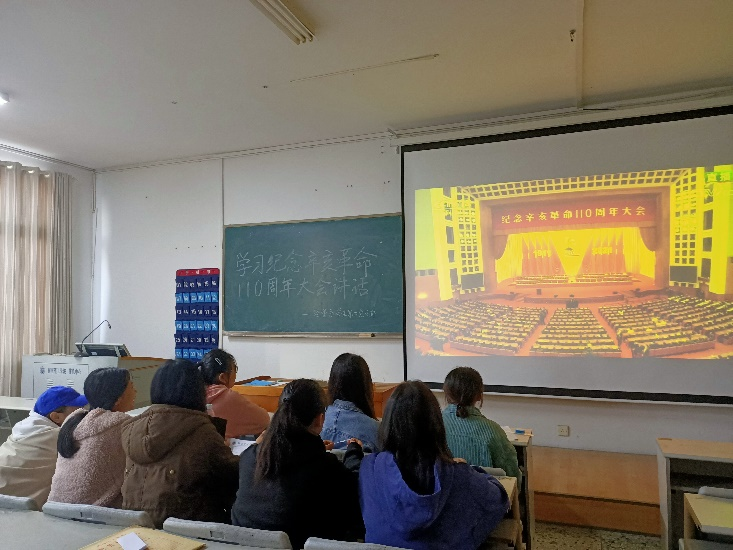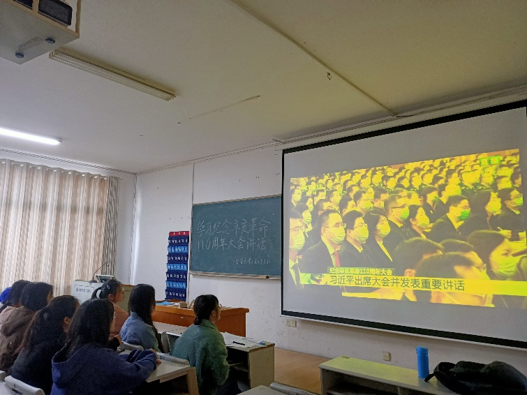为深入学习和弘扬孙中山先生等革命先驱为振兴中华而矢志不渝的崇高精神,11月16日下午,我系学生第二党支部在校党员于文学楼2410教室观看纪念辛亥革命110周年大会讲话。