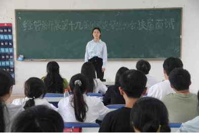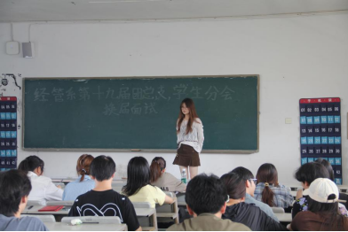 9月28日中午12:00,我系于东院文学楼2405教室召开了经管系第十九届团总支、学生分会换届面试。经管系党总支书记刘姣花,党总支副书记李鹏,学工办主任翁勇平、团总支书记周冰馨出席会议,第十八届团学会全体成员参加。本次换届面试由办公室干事梁佳俊主持。