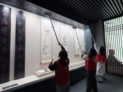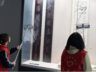 志愿服务环节以“洁净场馆”为核心,党员们分组行动:一组负责展厅展柜清洁,用专用软布细致擦拭展柜玻璃,去除指纹与浮尘,确保观众清晰观赏文物;二组针对公共区域,对地面缝隙、休息座椅、导览牌等进行清扫,及时清理垃圾杂物;三组协助工作人员检查清洁死角,维护场馆整体整洁。过程中,党员们严格遵守操作要求,主动向工作人员请教专业方法,以认真态度完成每一项任务,用行动为文化场馆“焕新颜”。