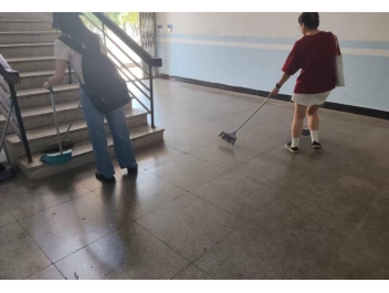 活动当天,学生党员们分工协作,在教室、走廊、楼梯间等区域开展全方位清洁。在教室中,党员们细致清理桌椅缝隙的杂物,认真擦拭桌面灰尘,让学习空间焕然一新;走廊里,大家手持扫帚,对地面碎屑进行彻底清扫,绝不放过任何一个角落;楼梯间的党员则专注于台阶的清洁,确保每一级台阶都干净整洁。