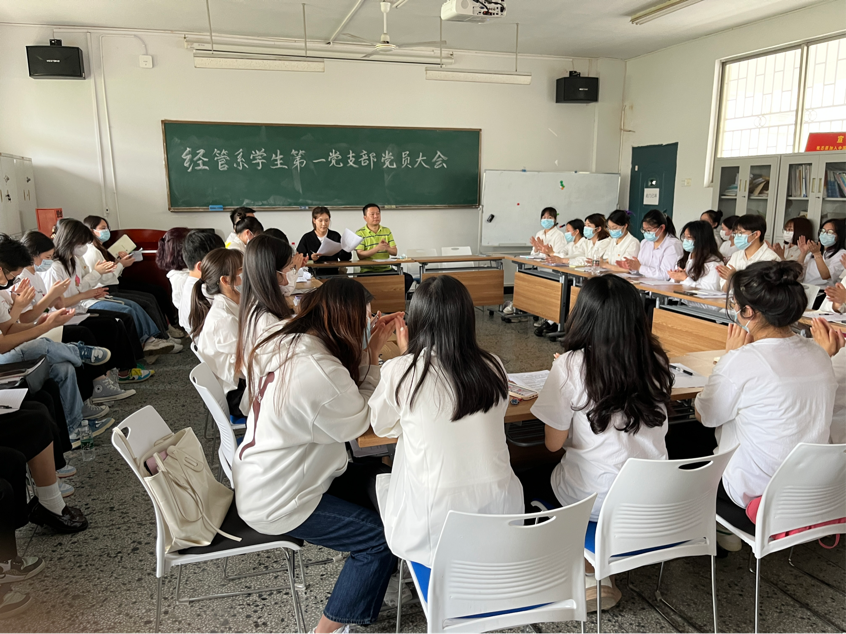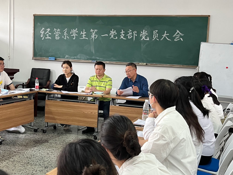 5月9日下午14:00,我系学生第一党支部在东院文学楼2404会议室召开党员发展支部大会。此次会议由优秀学生党员代表黄闪同志主持。原南湖学院院长彭平锋、经管系党总支副书记李鹏、支部书记翁勇平及经管系学生第一党支部全体学生党员参与此次大会。