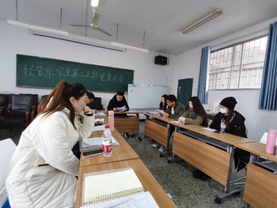 12月28日中午,我系学生第二党支部于文学楼2404教室召开党员大会,讨论接受尤慧杰同志为中共预备党员的事宜。支部书记沈浙及全体党员参加本次会议。