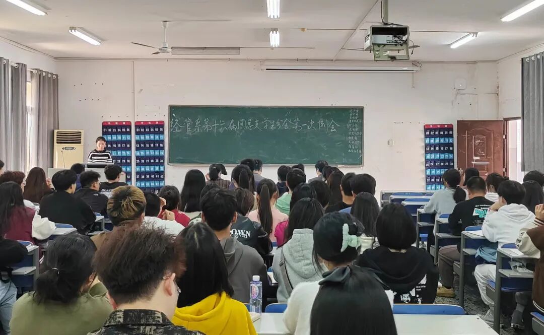 11月8日中午12:00,我系于文学楼2405教室召开了第十六届团总支、学生分会第一次例会。此次会议由办公室主任陈川兰主持,经管系第十六届团学会全体成员参加,出席会议的有经管系主任赵皇根、党总支书记刘姣花、党总支副书记李鹏、22级辅导员江杨姬等老师。