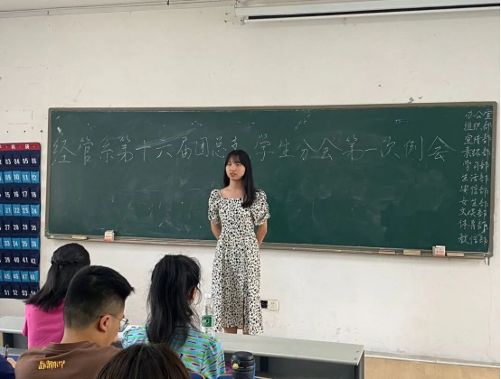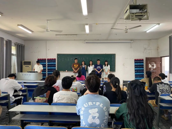 9月5日中午12:00,我系于文学楼2405教室召开了第十六届团学会本学期第一次例会,此次会议由办公室副主任邱文昊主持,21级辅导员胡家颖、22级辅导员江杨姬和第十六届团学会全体成员共同参加。
