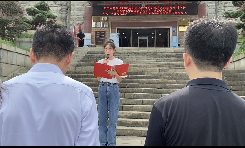在启动仪式上,岳阳市博物馆副馆长符昶对此启动式在本馆举行表示了热烈的欢迎,同时也简单介绍了博物馆的历史,最后预祝我系三下乡活动取得圆满成功!与此同时,我系学生代表肖倩同学作为暑期三下乡社会实践活动学生代表在此发言并承诺将严格服从带队老师安排;团队协作本着坚定不移的决心观察,思考,实践;以高度的态度保证圆满完成此次三下乡活动各项实践任务。