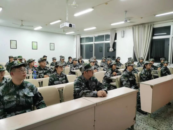 新生班主任隆重向本班同学介绍带训教官,并向同学们表示军训是进入大学的第一环节,能帮助大家更好融入学校,大家要克服困难,不言放弃。随后,教官们强调军训期间的军容军纪,要求严格按照标准,高要求、高质量完成军训工作。同时提醒军训期间应注意安全,科学训练。