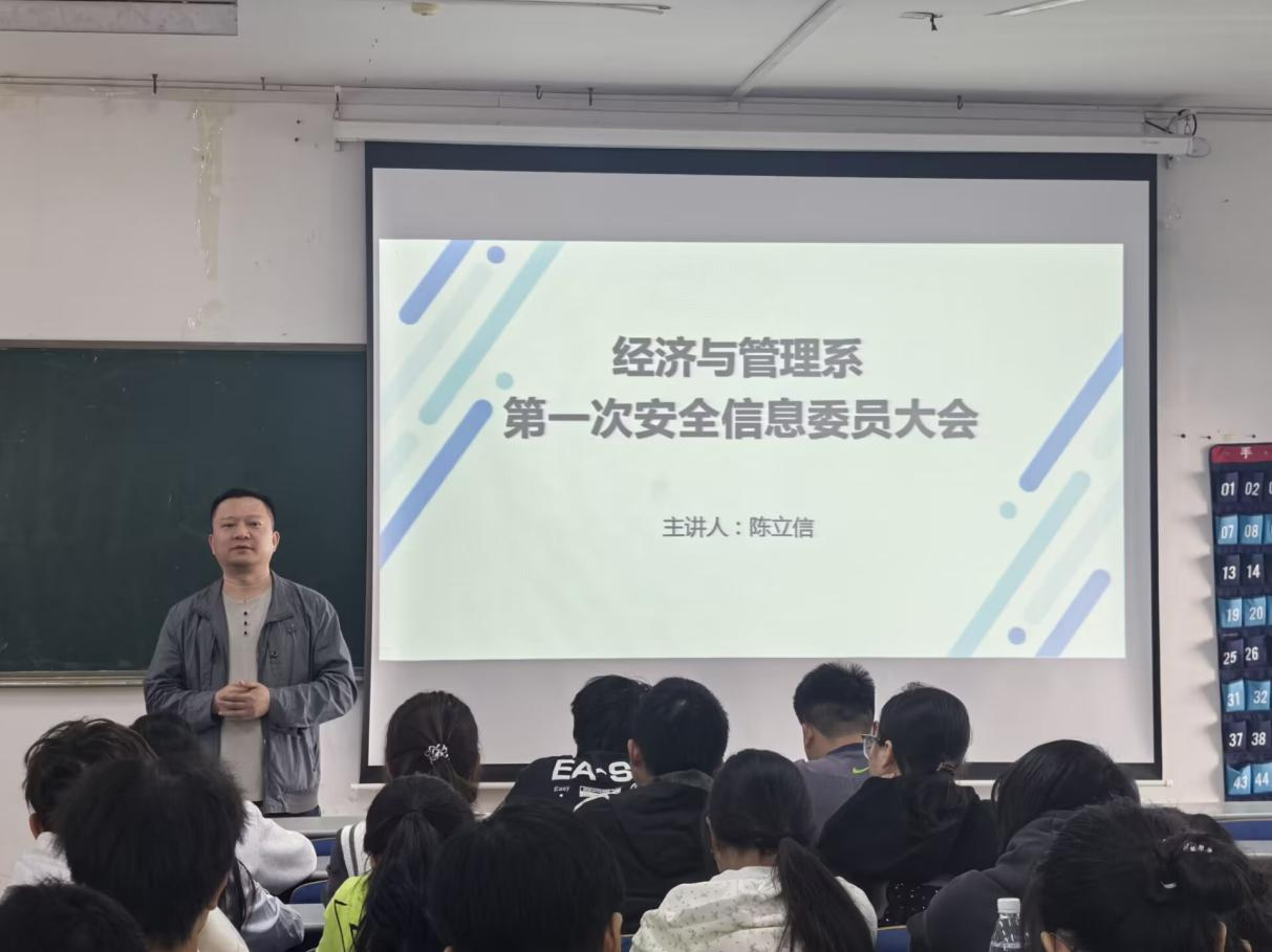 为了提升同学们的安全意识,促进学校安全工作的进行。2024年11月7日中午12:00,经管系第一次安全信息委员大会于东院文学楼2405教室顺利召开。经管系党总支副书记、安信部指导老师、23级辅导员李鹏老师,安信部全体成员及各班安信委员参会,此次会议由安信部干事蒋林纯主持。