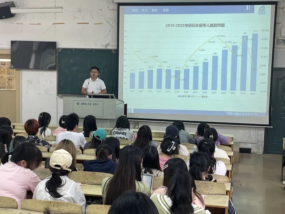 此外,大会邀请聚创考研机构的俞老师为同学们进行考研基础信息的分享。在分享过程中,俞老师为同学们分析了考研大趋势,简要概述了各大高校往年录取情况,同时阐述了学术型硕士与专业型硕士的区别,为同学们选择考研方向提供了参考。