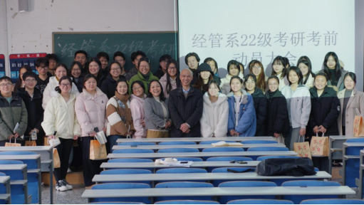 2025年12月17日下午,南湖学院经管系在东院文学楼2405召开2026届考研冲刺动员大会。此次会议由经管系2022级辅导员江杨姬主持,经管系主任吴忠才,党总支书记刘姣花与全体考研学子齐聚一堂,共同吹响决战考研的冲锋号角。